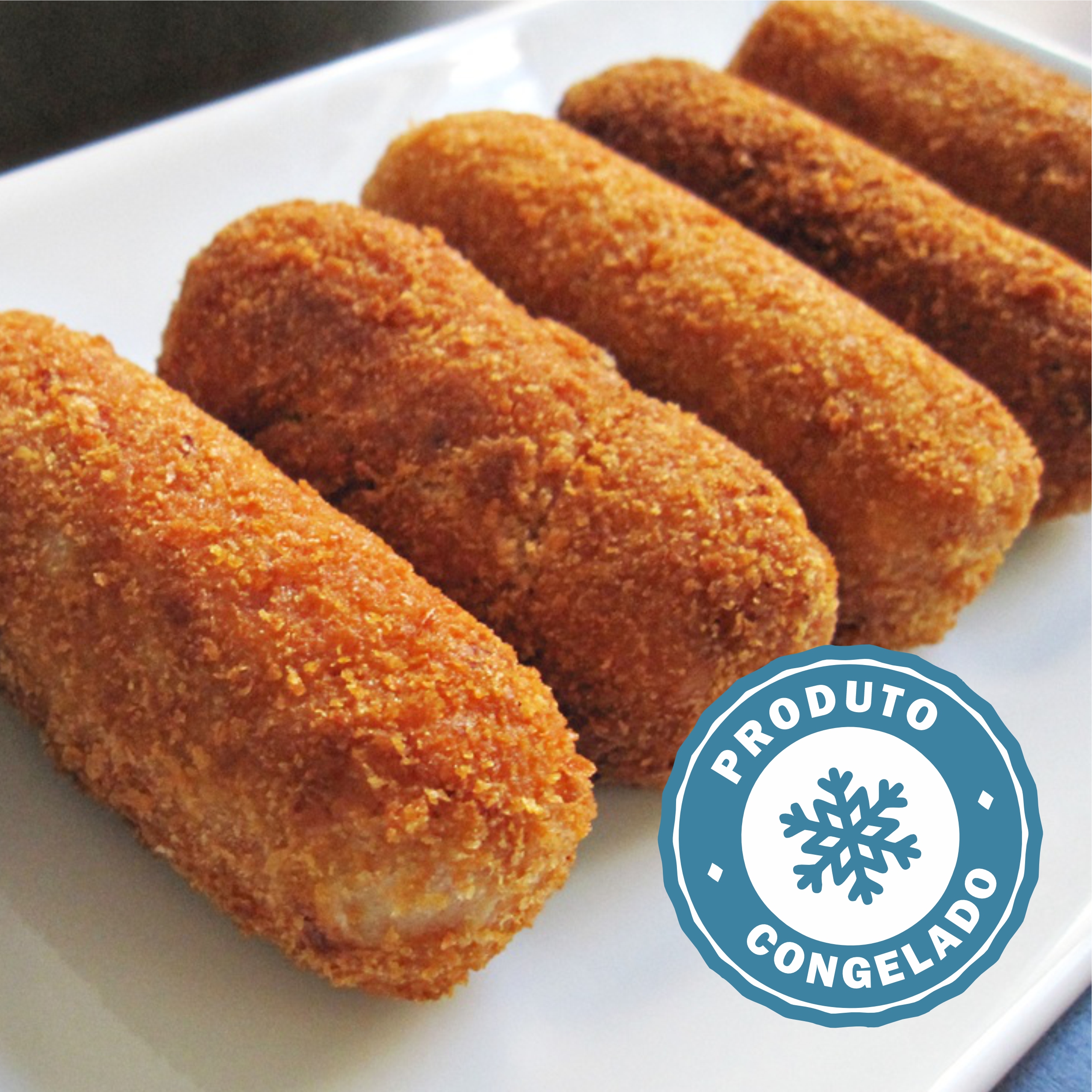 Modo de Preparo (Fritura): Frite os croquetes ainda congelados (não descongelar) em óleo limpo e quente (aprox. 180°C) por imersão.