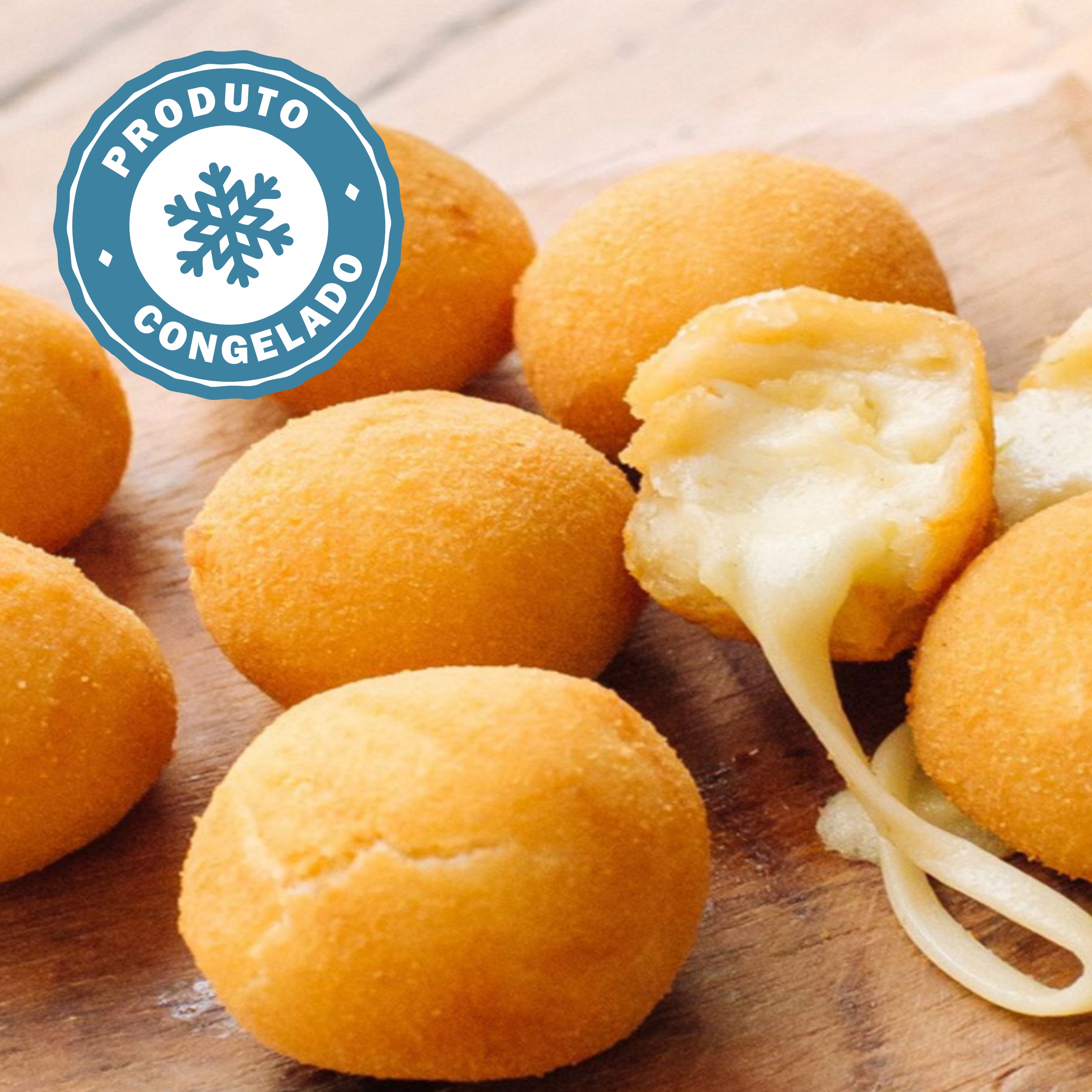 Especificações técnicas: Contém 25 bolinhas de queijo pré-fritas e ultracongeladas, de aproximadamente 12 gramas cada. O produto passa por processo térmico e congelamento rápido para manter a integridade da massa e do recheio.